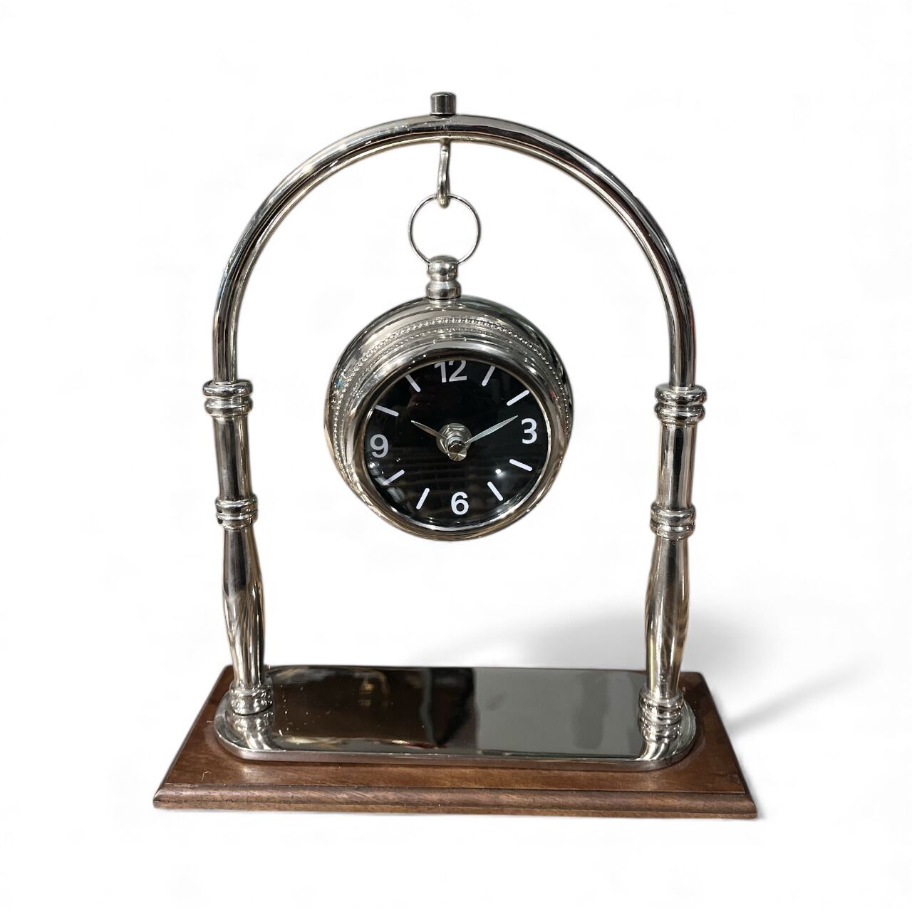 Gümüş renk metal masa saati